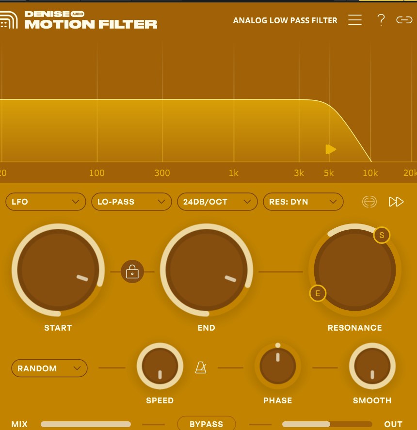 「Motion Filter」はDeniseAudioのフィルタープラグイン!従来のフィルター操作に加えて、フィルタースイープとLFOによるフィルターの動きを加えられるダイナミックフィルターです。