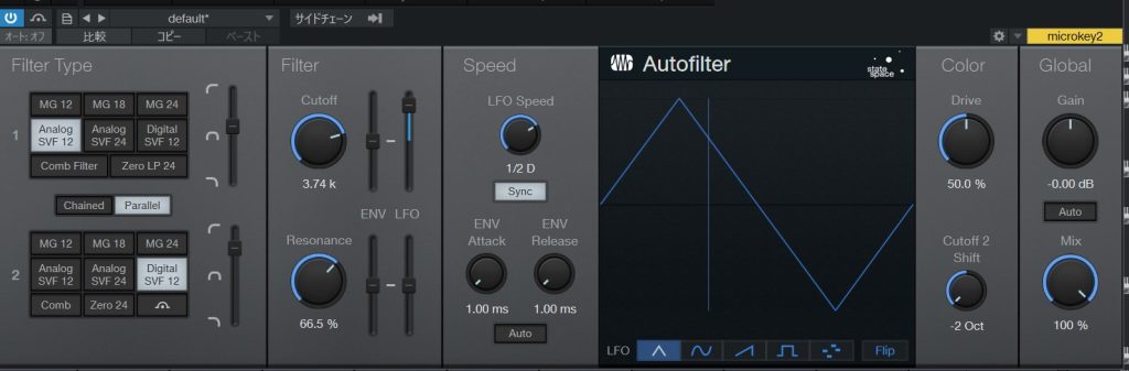 私はStudioOne使いなので、最初に見たフィルタープラグインがAutofilterだったんですよね。