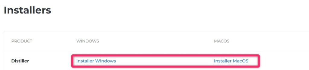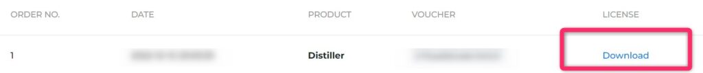 [1] Licensesのセクションで「Download」を押して「distiller.dat」をダウンロードしておきます。