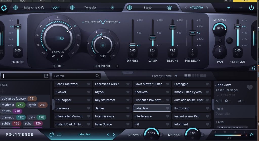 それではPolyverse Filterverseのレビュー!