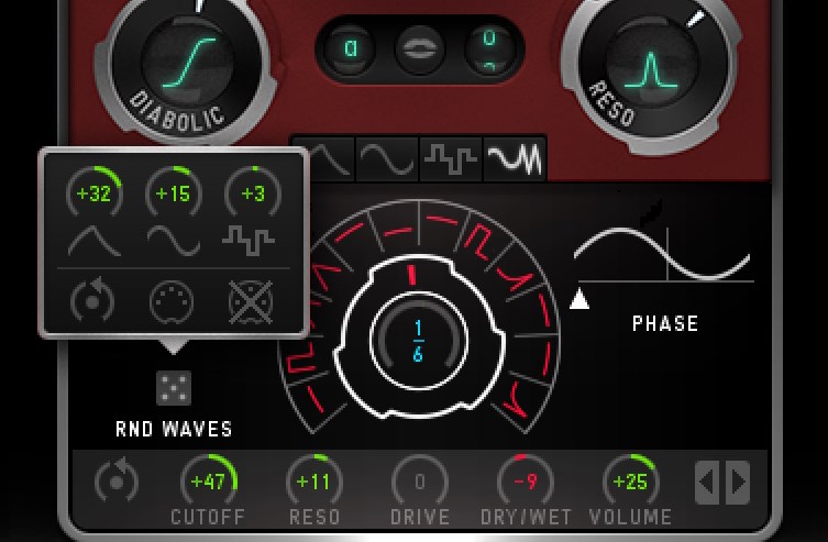 ランダム ボタンは、ランダムな波形状況を設定します。特定のイベントで自動的にランダム化するために、変調できます。