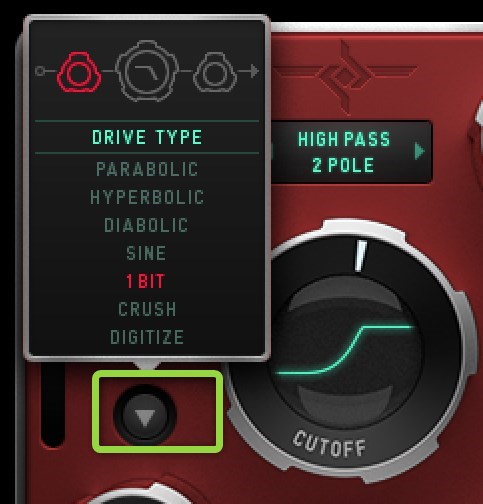 Sugar Bytes WOW2ではフィルター以外にドライブセクションも用意されていて、歪んだ音を加えることもできます。