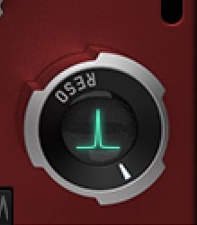 フィルター形状がRESOノブのディスプレイに表示されます。RESOの値を上げていくと形状が細くなっていき音が機械的なサウンドになります。