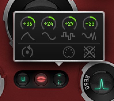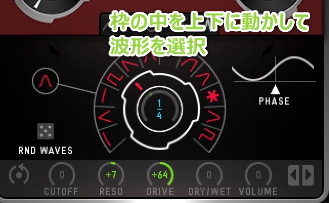 ウォブル ノブでは、12 種類の LFO 速度と 16 種類の波形から選択できます。