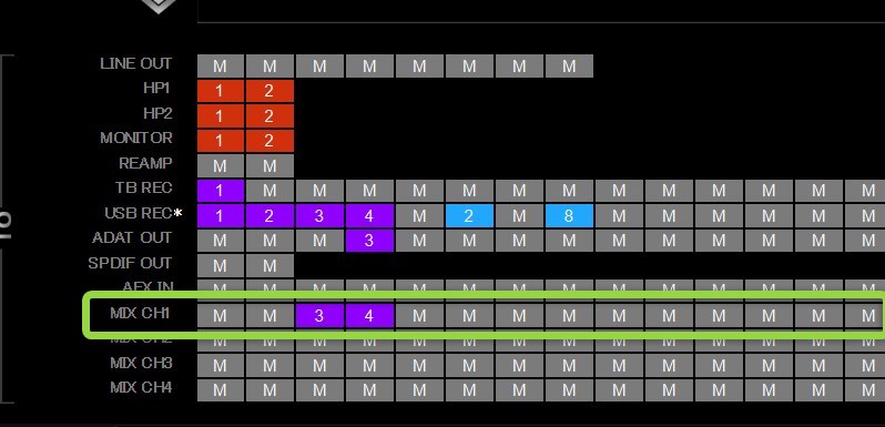USB Playの3,4を「MIX CH1」のいずれかに場所に配置します。