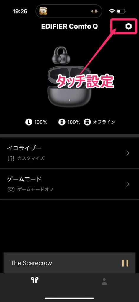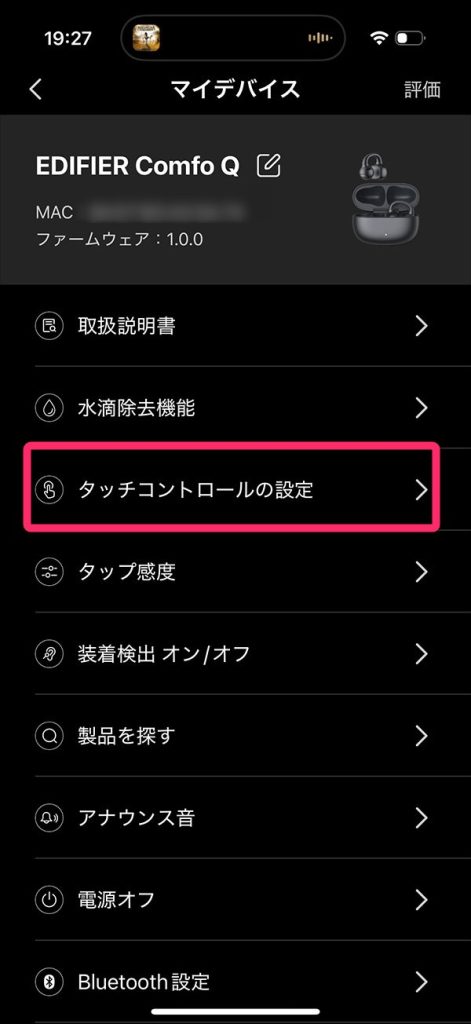 他のEdifierワイヤレスイヤホン同様にタッチ操作の内容を切り替えできます。