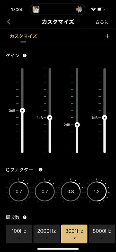4バンドで周波数帯を数値入力できるイコライザーに慣れている人からすると非常に便利な機能です。
