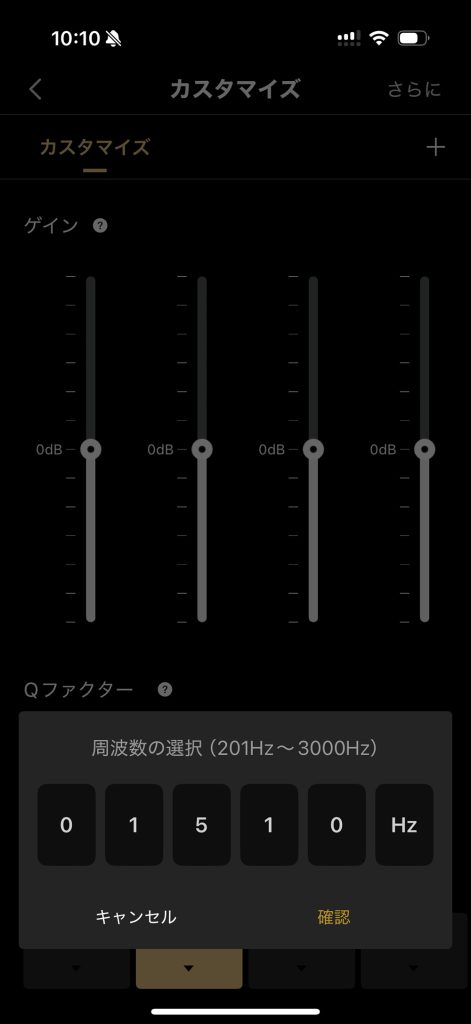 4バンドで周波数を数値指定し上下できるカスタムイコライザー
