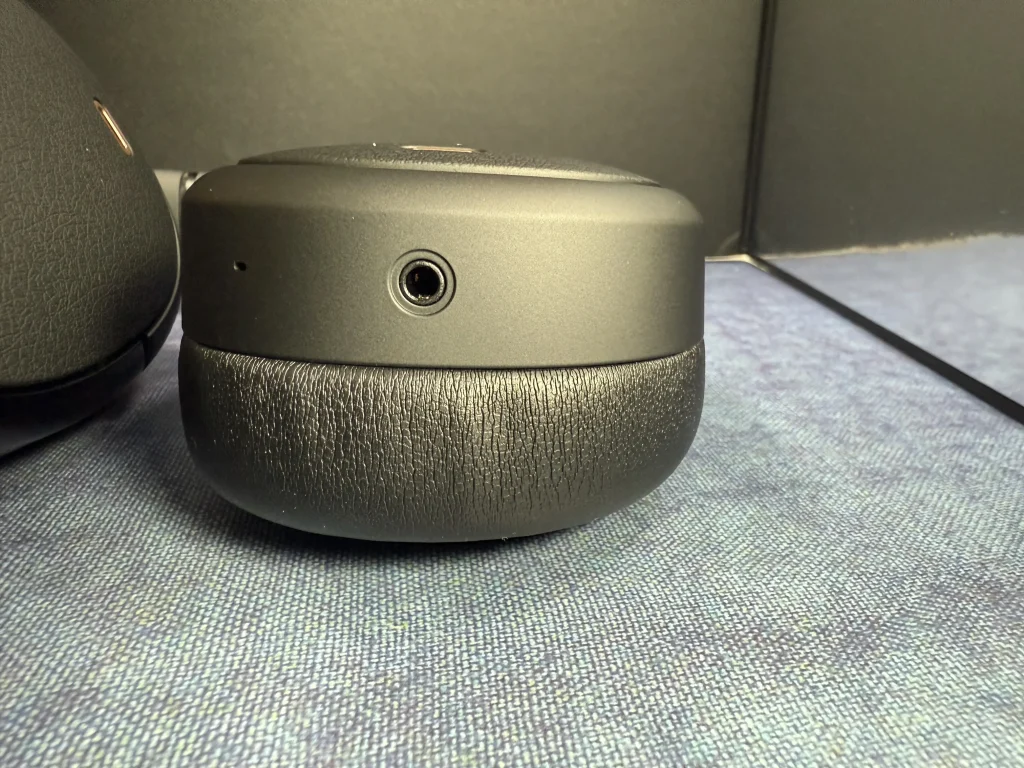 左側に3.5mmイヤホンのジャックがあります。ケーブルをつなぎたい場合はここに付属のステレオオーディオケーブルを差します。