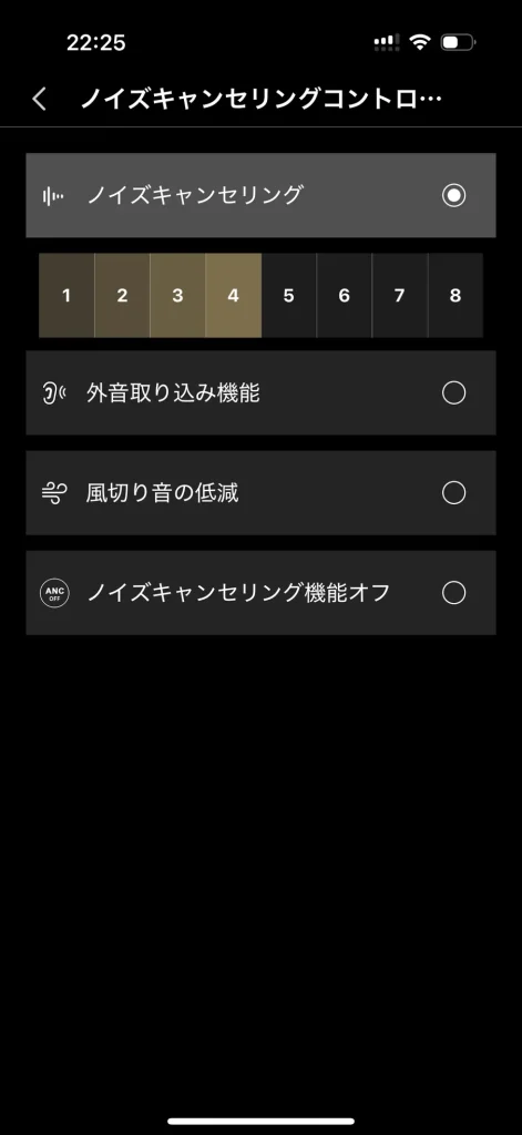 ノイズキャンセリングのレベルを8段階で調整できるのも驚きました。