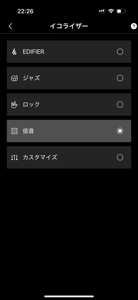 イコライザープリセットの「EDIFIER」を入れるとバランスよく音が派手になるので、ライブ感が欲しい場合はこのプリセットが良いですね。