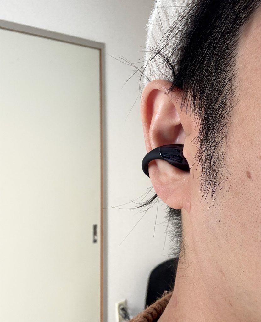 SOUNDPEATS CCイヤーカフイヤホンは装着感がゆるいので本当に耳につけていても気になりません。