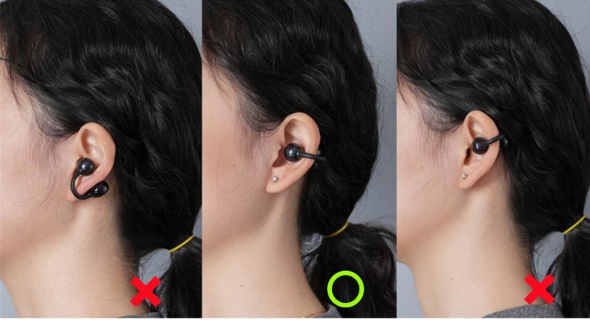 イヤーカフタイプは装着角度で音がかなり変わるので、推奨されている付け方で装着します。