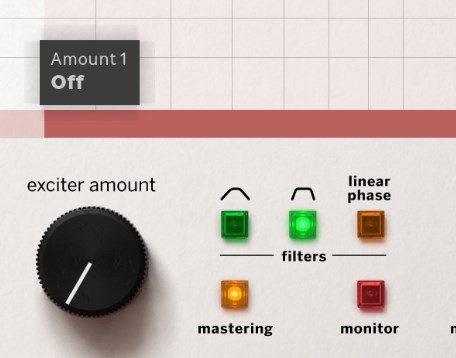 exciter amountを左へ振り切るとOFFになりバイパス状態と同じになります。
