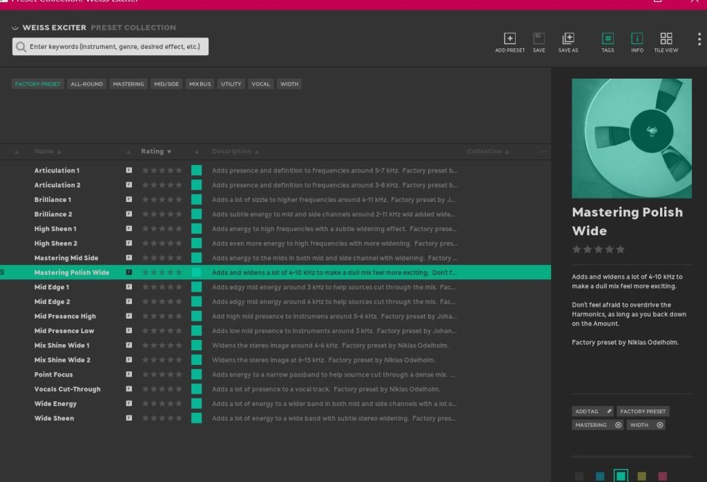 Softube Weiss Exciterは、スイスの高級オーディオ機器メーカーWeiss EngineeringとSoftubeが共同開発した、世界初の「トランスペアレント・マスタリング・エキサイター」とされるプラグインです。