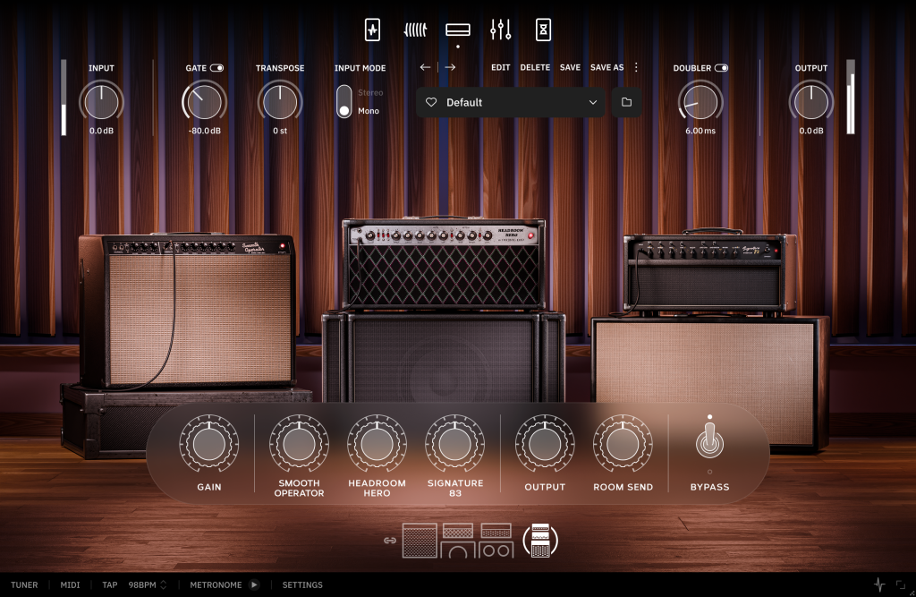 Headroom Heroは、広大なクリーンヘッドルーム、即応性、そして並外れたレスポンスを特徴としています。極限の音量でも、トーンはクリアで広がりがあり、圧縮されていないまま、プレイヤーのタッチのあらゆるニュアンスを余すところなく表現します。クリーンチャンネルは音割れせず、多くの設計ではコンプレッションやディストーションに頼らざるを得ない状況下でも、明瞭さと力強さを維持するアンプです。また、オルタネート入力は、必要に応じて意図的にサチュレーションを加えることも可能です。