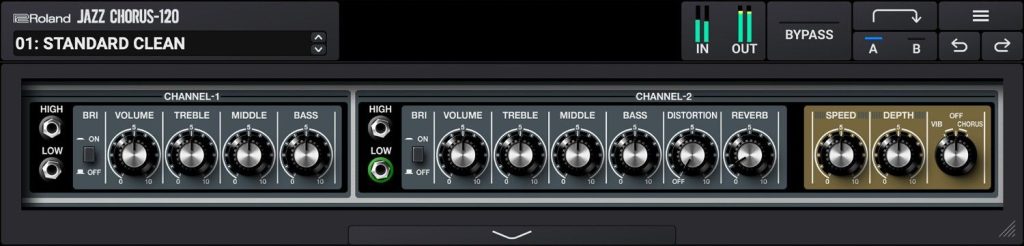 リハスタやライブハウスに常設されているギター・アンプ「JC-120 Jazz Chorus」のアンプシュミレーター。