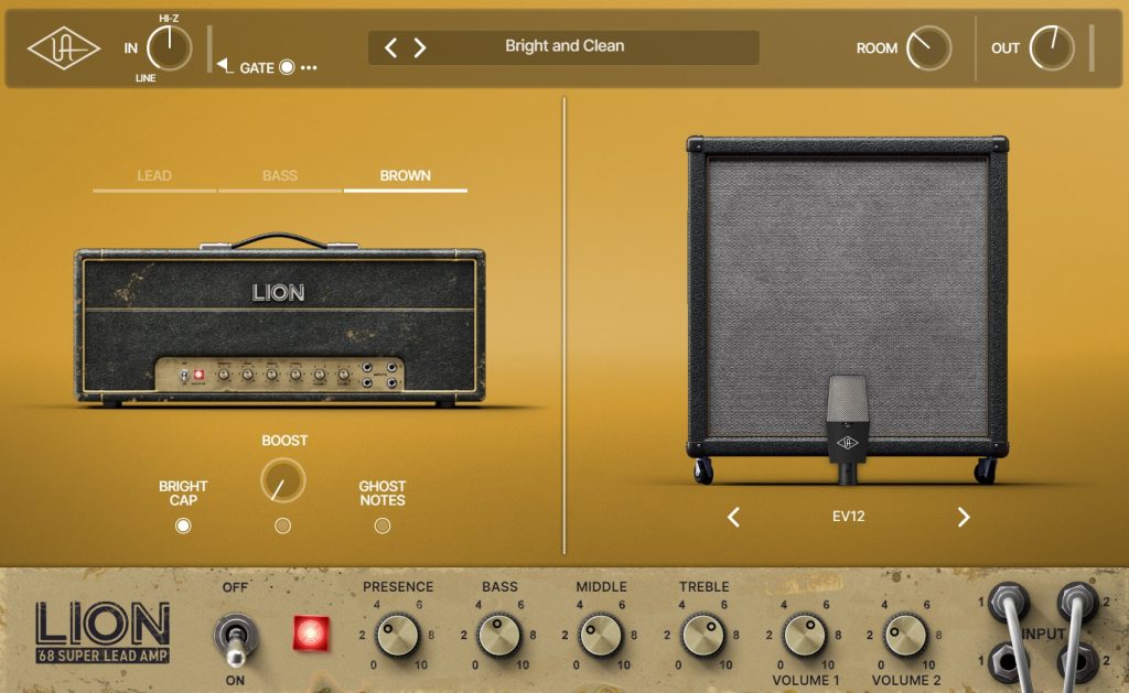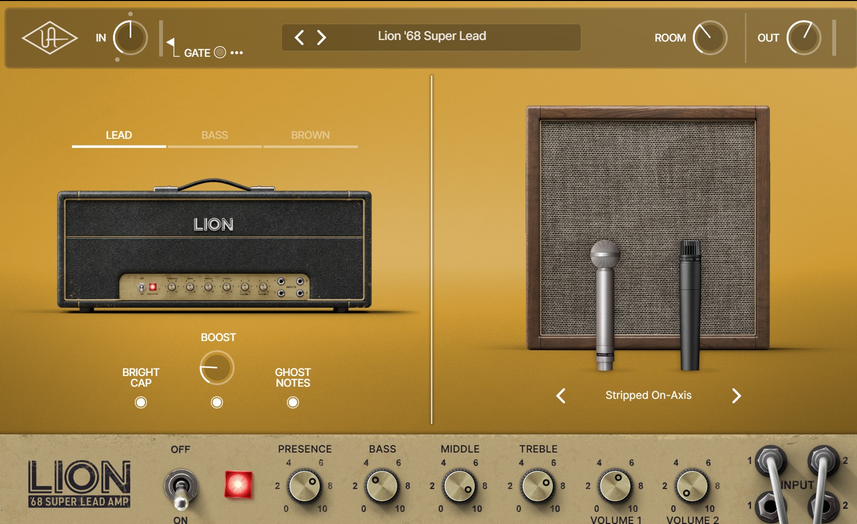UAD Lion 68 Super Lead Ampは2ボリューム仕様です。