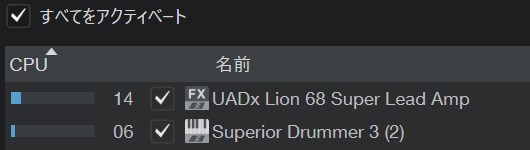UAD Lion 68 Super Lead Ampの音は最高峰に良いですが、CPU負荷は高めなので注意してください。これは良い音の代償なので仕方がないですね。