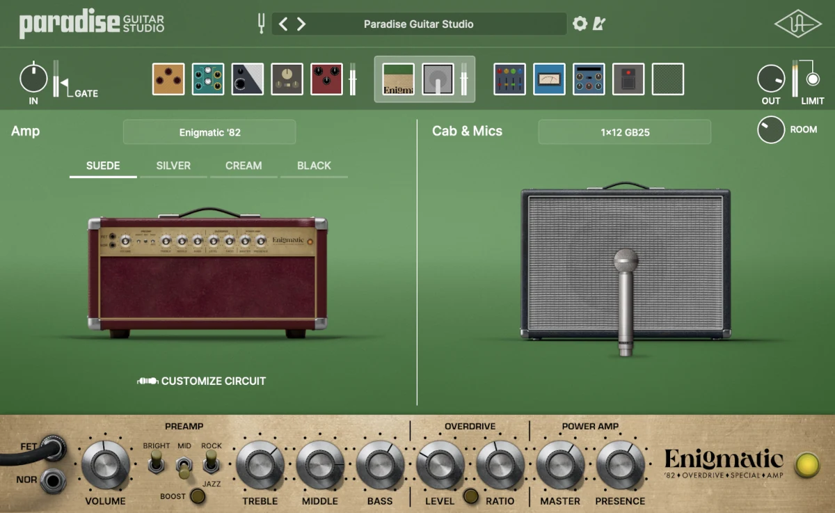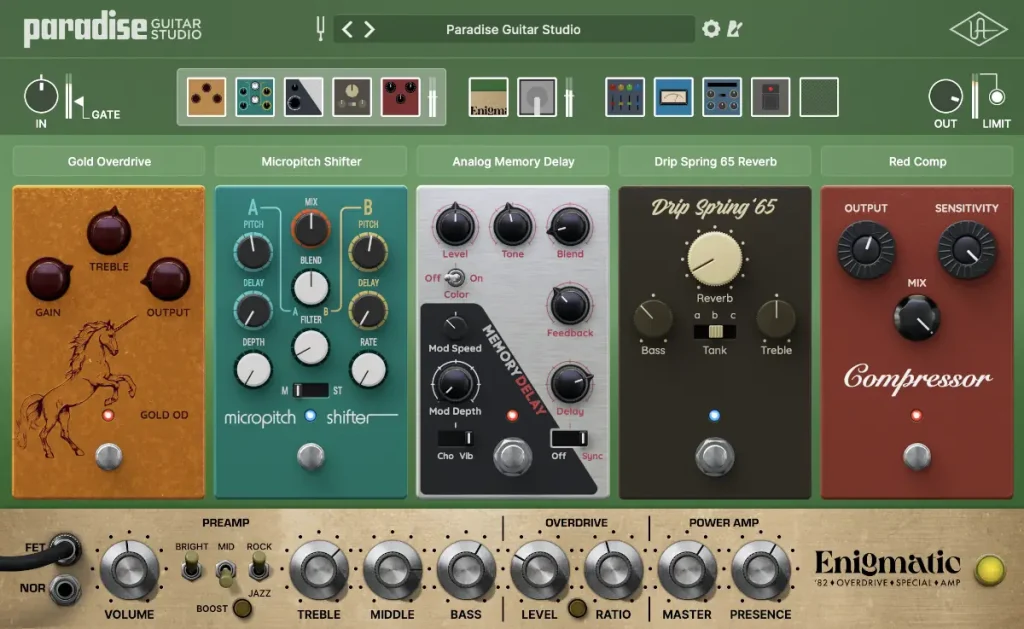 UAD Paradise Guitar StudioはこれまでリリースされていたUADのギターアンプシュミレータープラグインを一度にまとめて呼び出せる母艦アプリ。