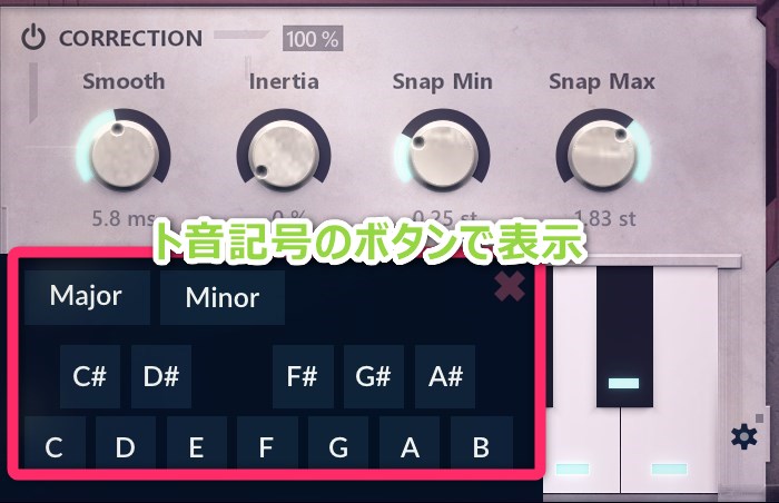 自動ピッチ補正機能。スケールはMajor/ Minorのみ