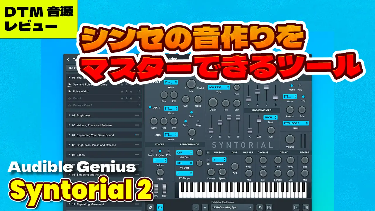 Audible Genius Syntorial 2は何度も自宅で学習できつつも、正誤の体験がすぐできて繰り返し学習し身につけられるシンセレッスンツールに仕上がっています。