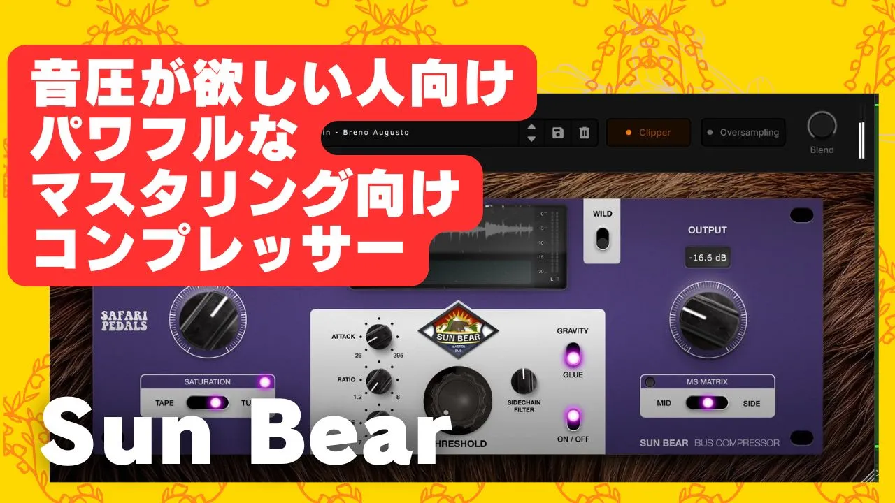 「Sun Bear」は Safari Pedals のマスタリング向けコンプレッサープラグインです。(2025年3月31日発売)