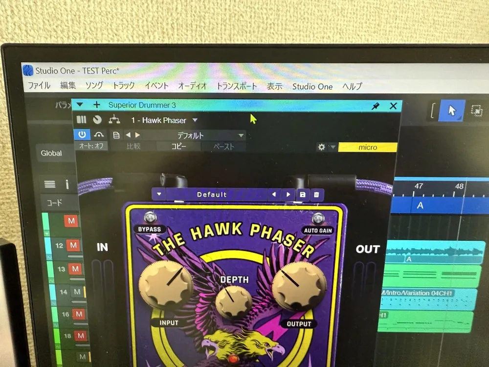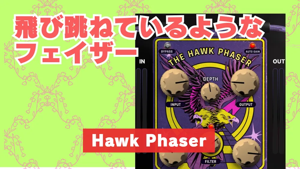 フィルターがついていることで従来のクラシックフェイザーの質感とはまた違うサウンドを作ることが可能になりました。Hawk Phaserの名前っぽく!? 飛び跳ねているようなサウンドになります。
