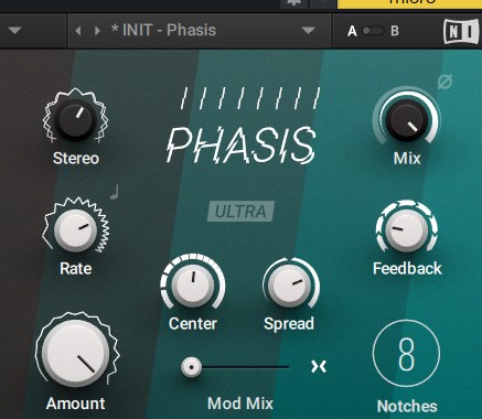 昔からのフェイザーだとARTURIA Phaser BI-TRONやNative Instruments PHASISようなRATE設定とDEPTH設定があってシュワシュワ言わせるエフェクターの印象。