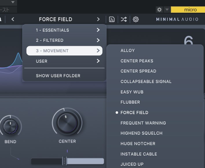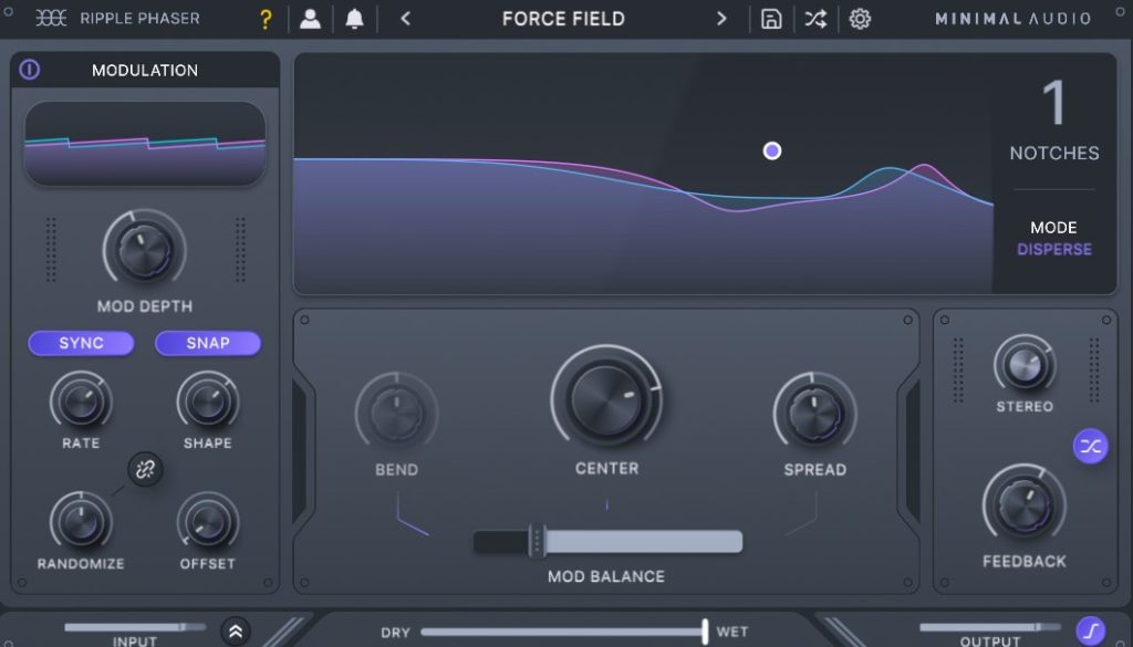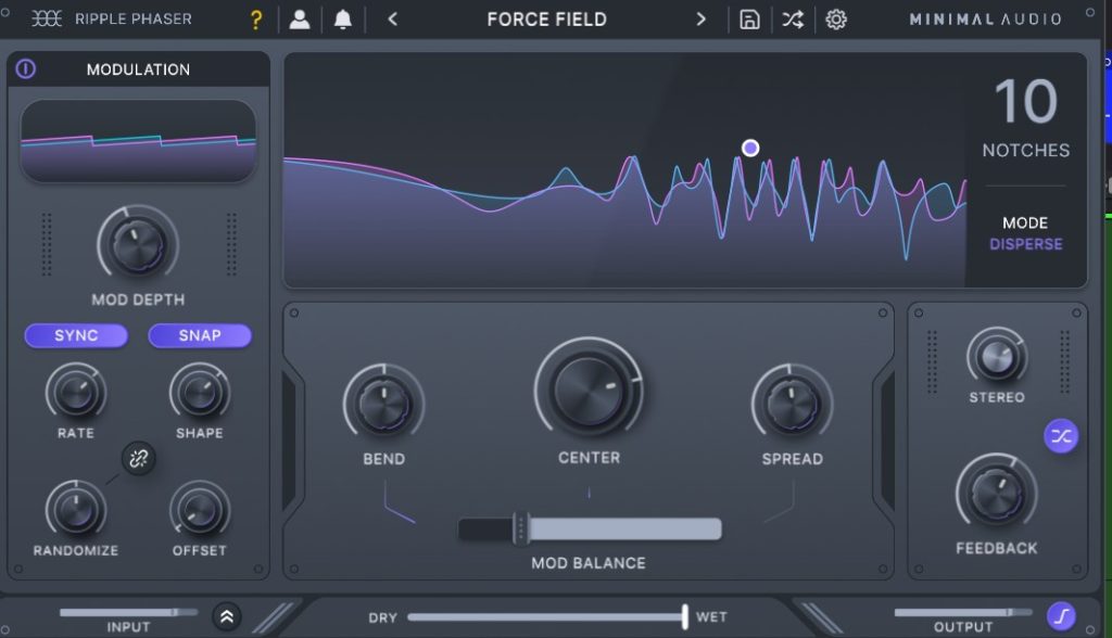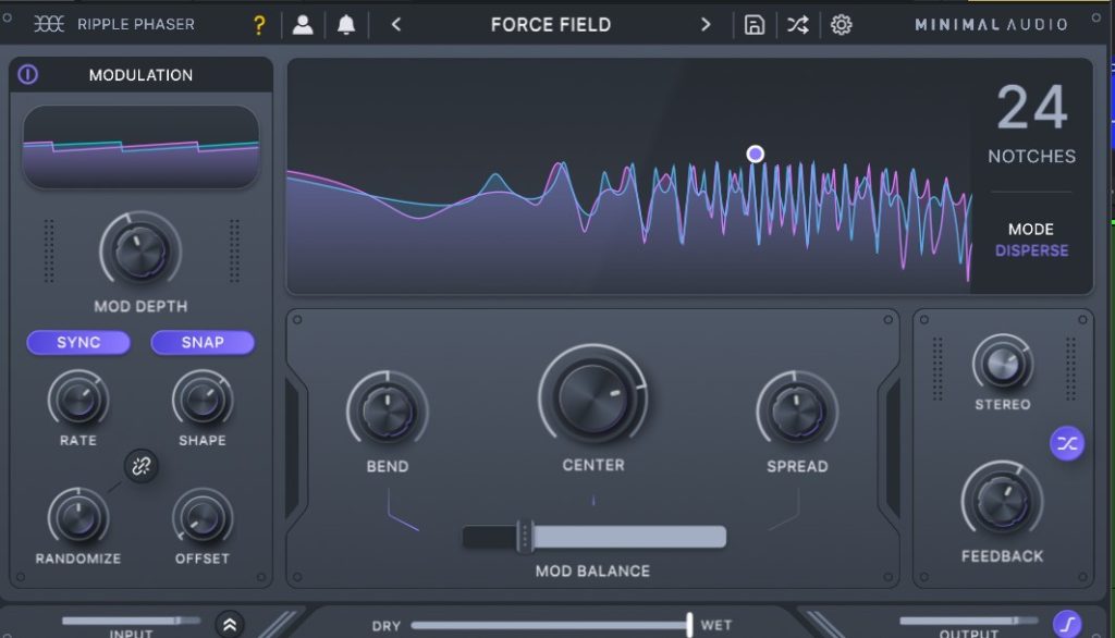 従来のフェイザー効果を出すSPREADとMinimal Audio Ripple Phaser 独自のバーバーポール効果を作成するのに最適な独特の「BEND」パラメータを含む 3 つのコントロール間を継続的にルーティングできます