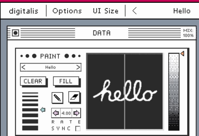 Digitalisのイメージとしては壊れたパソコンから出る音や、回線の悪い状況で通話しているときのノイズを音楽的使ってノイズで遊ぶエフェクターです。