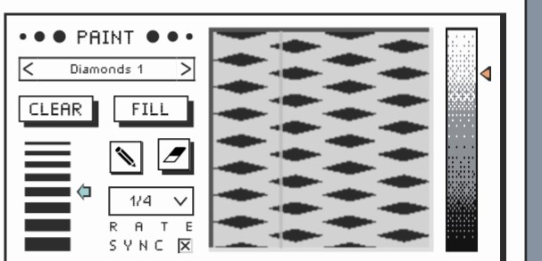 ウィンドウの順序を入れ替えて信号フローを変更できるほか、16ステップ・テンポ同期シーケンサーに4つのエフェクトスロットを配置可能。モジュレーションを組み込んでリズミカルなサウンドを自作できる自由度があります。