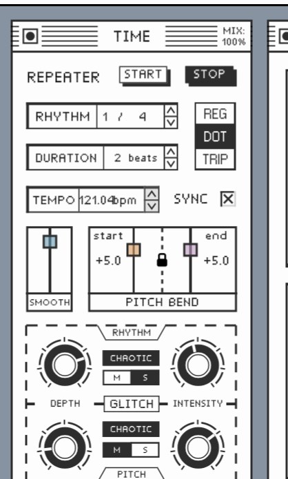テンポ同期またはフリーフローのリトリガー機能、ビートリピート、ピッチ変調、リズムグリッチなどを自在に操れる。時間軸にカオスな動きを付与し、実験的なリズミカル展開を作ることができます。