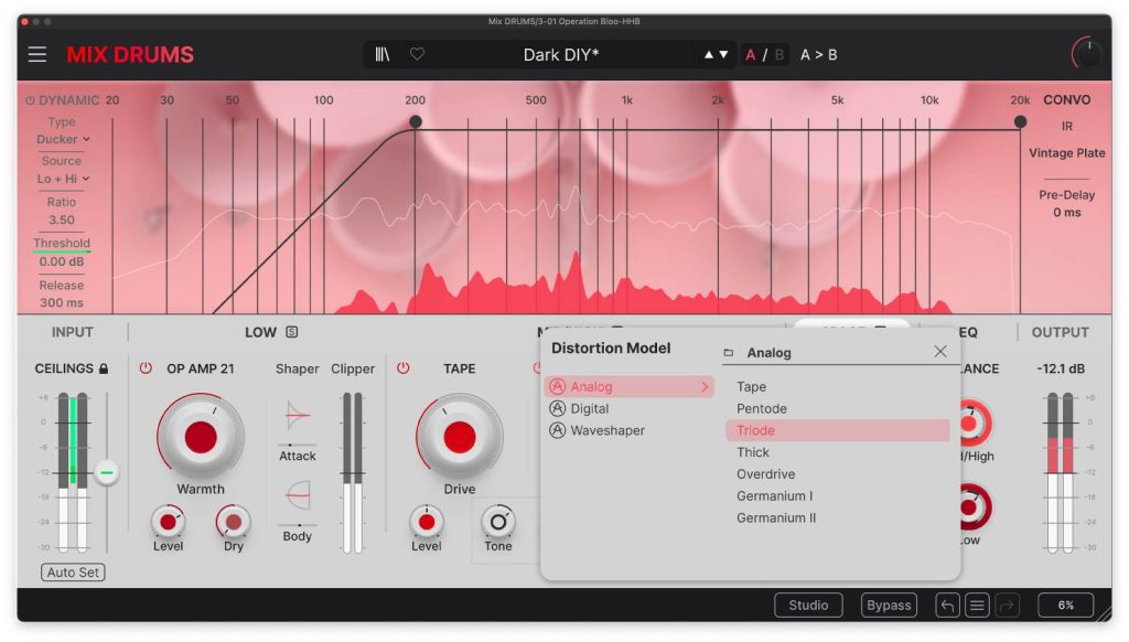 テープドライブのようなサチュレーションとマルチモードのディストーションエンジンを搭載。