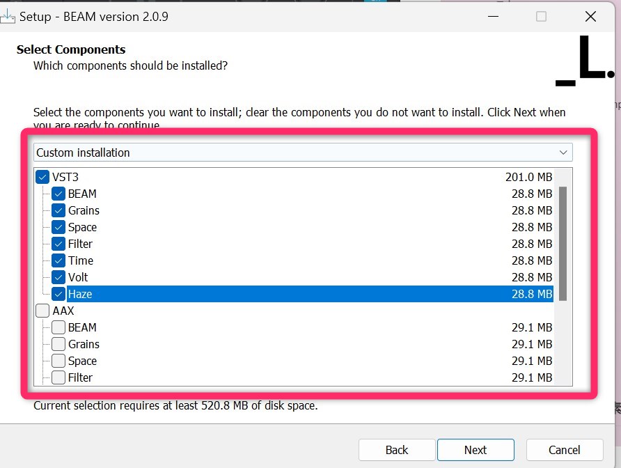 ProToolsを使わない場合はAAXのチェックは外して問題ありません。