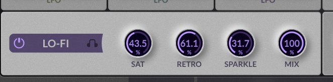 RETROはローパスだったりリングモジュレーターだったりと色々なエフェクトが組み合わせて処理されるパラメーターです。サクッとLoFI処理したいときに活躍。