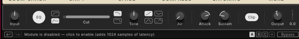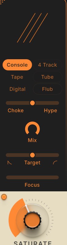 - Saturate(サチュレート):デジタル録音の冷たさを解消する、6パターンの歪み(ディストーション/サチュレーション)モード。 これらを並べて最後に「Magnitude」というマスタースライダーを押し上げるだけで、すべてのモジュールの適量具合がスケーリングされ、どんなに貧弱なリズムトラックも「市販のCDクラスの分厚さ」へと変貌するのです。