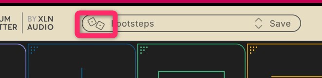 プリセットメニュー左にあるランダマイザーボタンはプリセットをシャッフルさせ、想定外の音を呼び出せます。