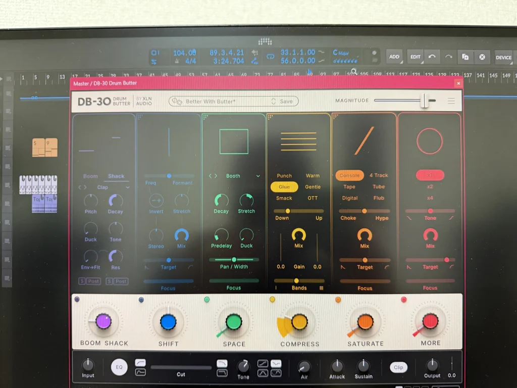 深夜の作業のノリでDB-30 Drum Butterを試す手軽な素材がないか?フォルダを見ていた所、SUNO曲データがあったので試しにマスターバスへ入れた所、これが面白い効果になりました。