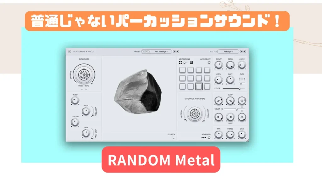 レゾネーターで加工した癖の強いパーカッシブサウンドをランダムなパラメーターで変化させていくパーカッシブモノシンセサイザー「RANDOM」の続編が登場。 BEATSURFING RANDOM Metal❗️❗️ BEATSURFING RANDOM Metal とは? パーカッシブなサウンドが病み... -