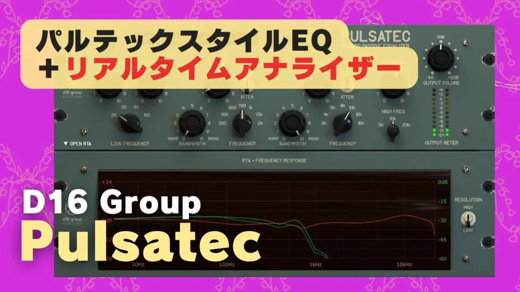 D16 Group Pulsatecは、2025年6月30日にリリースされたビンテージパッシブEQをエミュレートしたモダンなイコライザープラグイン。 PulsatecはパルテックスタイルのEQです。 D16 GroupとしてはEQプラグインはリリースしておらず、今作が初なのがちょっと意... -