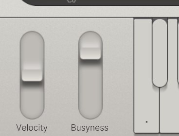 MODホイールでVelocity の調整をする仕様ですが、Instrumentモードの場合はMIDI鍵盤のタッチの強さでベロシティが変化するので、他のピアノ音源同様の動作です。