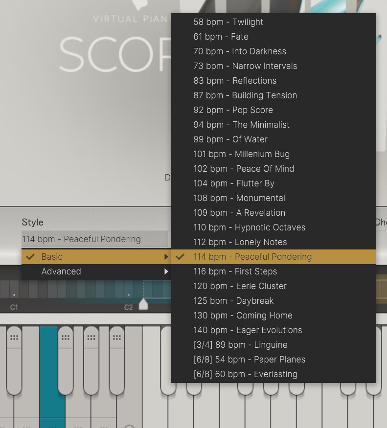 UJAM SCOREで自動演奏されるフレーズはStyleより選びます。