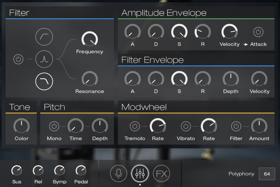 たとえば、UVI Workstationでインストゥルメントをロードしたら、マイクミックスのスライダーを動かして、近い位置の音か遠くの響きかを選ぶんだ。次に、エフェクトチェーンでリバーブを軽く加えて、空間感を出してみて。
