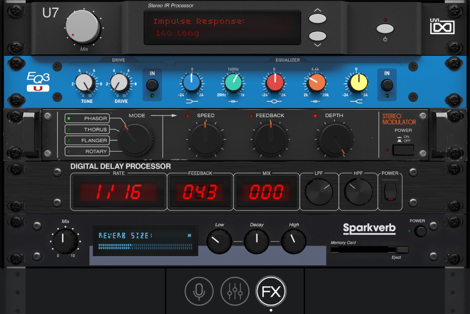 しかも、スタジオクオリティのエフェクトが内蔵されていて、リバーブやEQ、モジュレーションをリアルタイムでかけられる。