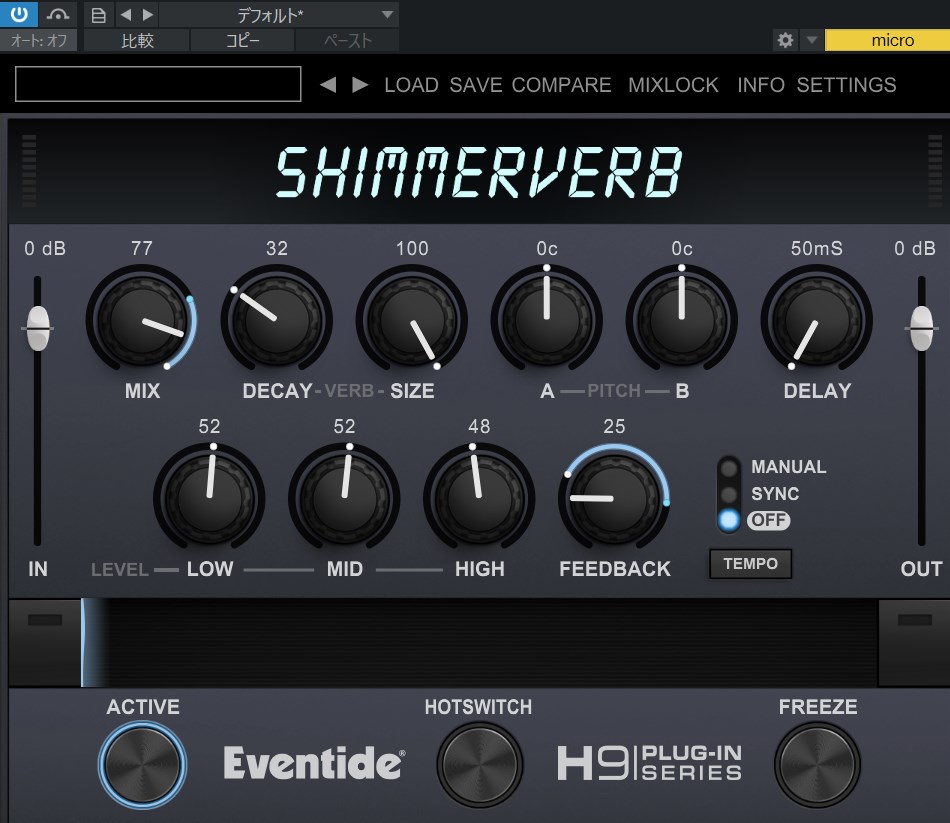 Eventide ShimmerVerb はピッチの設定しなければ普通の濃厚なルームリバーブとしても利用できます。他社のリバーブより密度が濃い印象です。