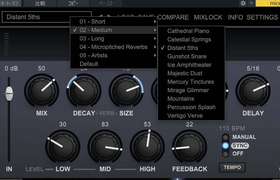 アンビエントを生かした雰囲気を演出できる個性的なサウンドなのですが、リバーブ単体として探していくあまりなくDTMの場合はリバーブにピッチシフターを重ねて作っていくようなやり方しかありませんでした。(またはギターアンプシュミレーターに付属しているリバーブにシマーリバーブモードが付いていることがある)