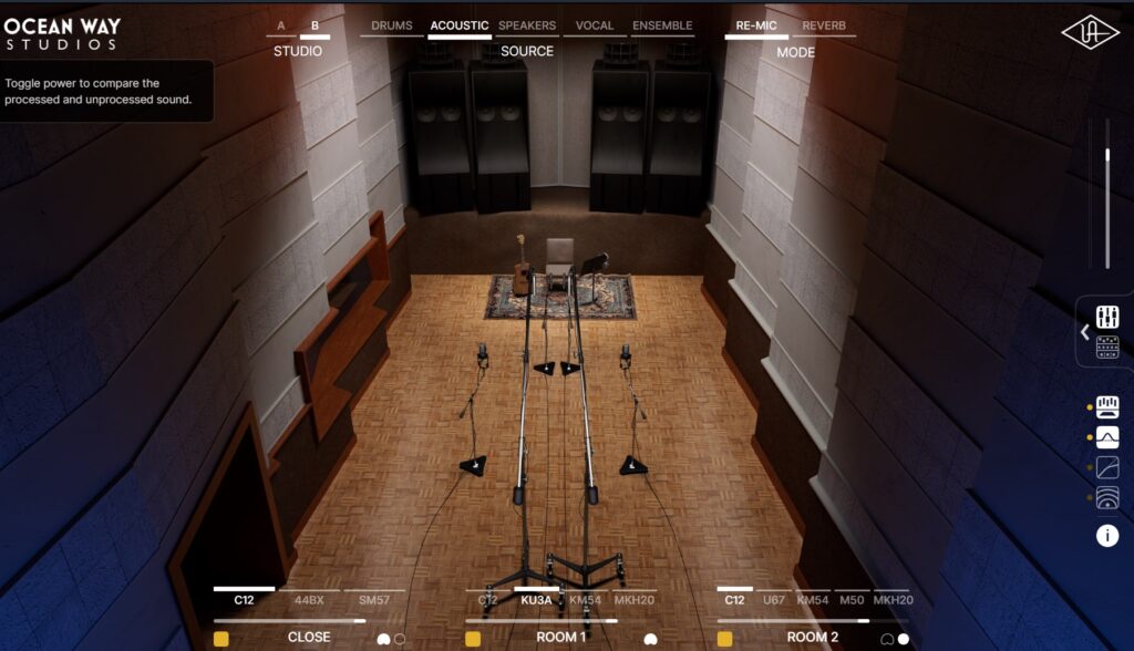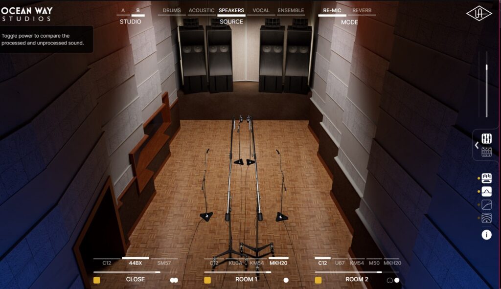 伝説的なレコーディングスタジオ「Ocean Way Studios」の部屋の響き、マイク位置、アナログ機材、リバーブチャンバーをDynamic Room Modeling技術で再現したもので、主にボーカル、ギター、ドラムなどのトラックに深みと空間感を加えるツールとして注目されています。