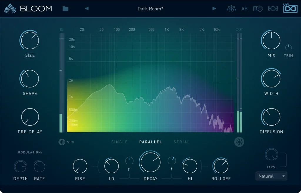 UVI BLOOMの個性となっているのが、リバーブの挙動を精密にコントロールできる3つのモード:Single、Parallel、Serialの切り替え。