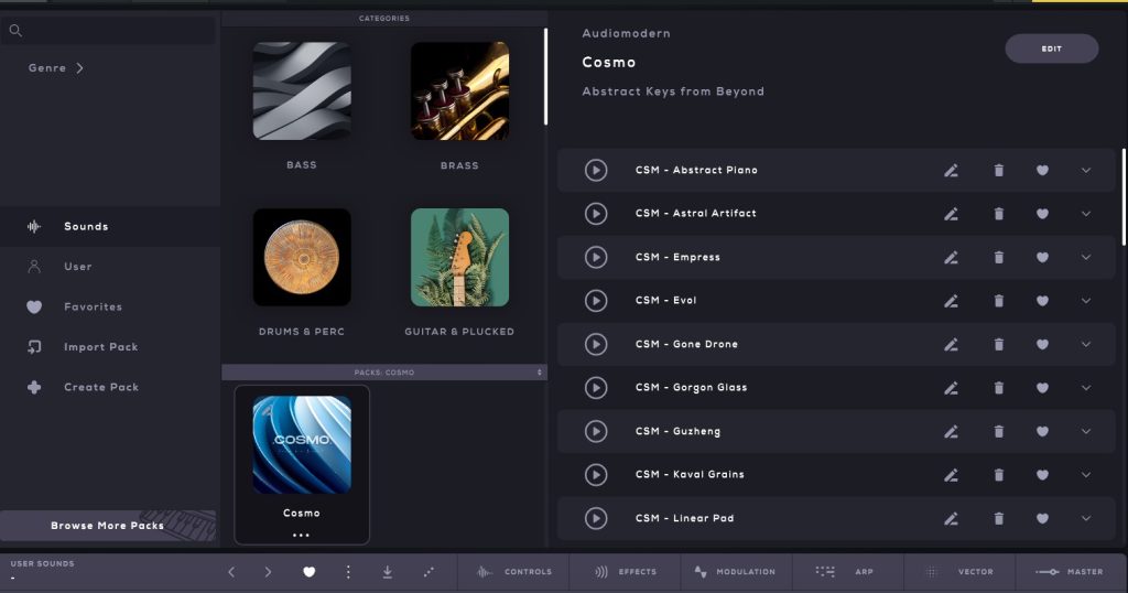 Cosmo の核となるのは、綿密にサンプリングされたオーガニックな音色です。各サウンドは、オーガニックな音色と繊細な電子処理を融合した実際の楽器から抽出されています。これらの楽器は、あらゆるニュアンスを捉えるために忠実度の高い録音が施されており、各パッチに温かみのある自然なベースを生み出します。